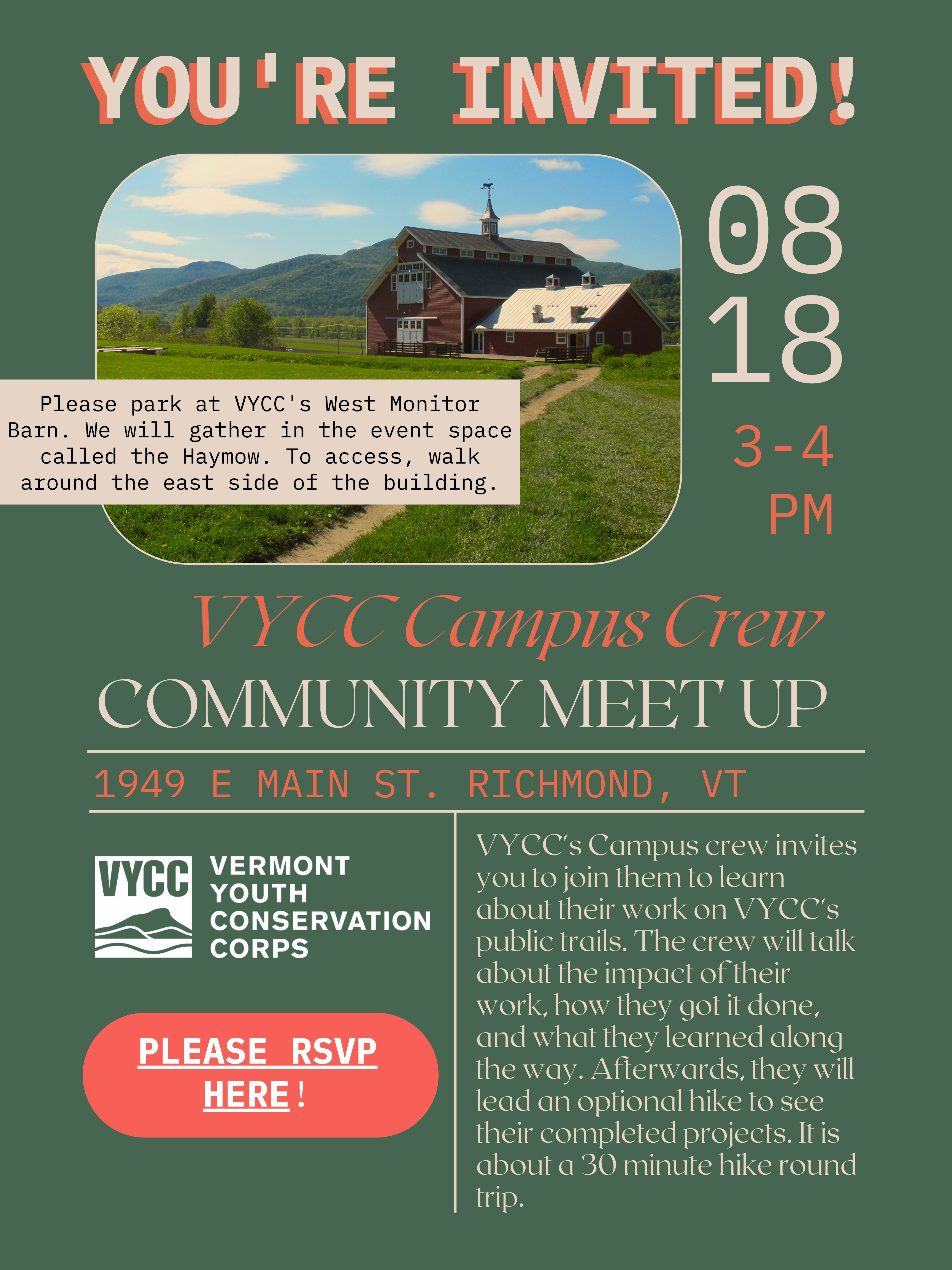 VYCC's Campus Crew invites you to join them to learn about their work on VYCC's public trails.