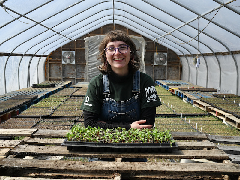 Viv Merrill is joining VYCC after graduating from Middlebury College, where they studied food systems and lived in the local food house. She grew up outside of Seattle, and has loved nurturing her relationship to soil while working on veggies farms in Washington, California, and Vermont. Viv believes that food is a powerful tool in building community and connecting us to the land and seasons. She feels strongly that everyone deserves access to nourishing food and enjoyed furthering state food access initiatives during an internship with Hunger Free Vermont. She understands that access to fresh local produce lies at the center of community health, and is deeply excited to be contributing to VYCC’s Health Care Share program. Off the farm, Viv can be found throwing on a pottery wheel, spinning wool, and reading sci-fi novels!